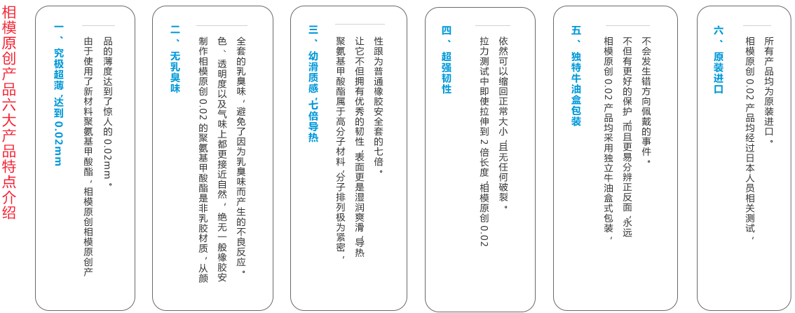 1998年日本相模公司突破性地發明以“聚氨基甲酸酯”為原料生產的相模原創0.02安全套,沒有乳膠及任何臭味,比普通橡膠安全套有著更佳的體熱傳導性,使用時體溫可于瞬間傳至伴侶體內,減輕不適及不自然感,并創下迄今為止零過敏的記錄。
